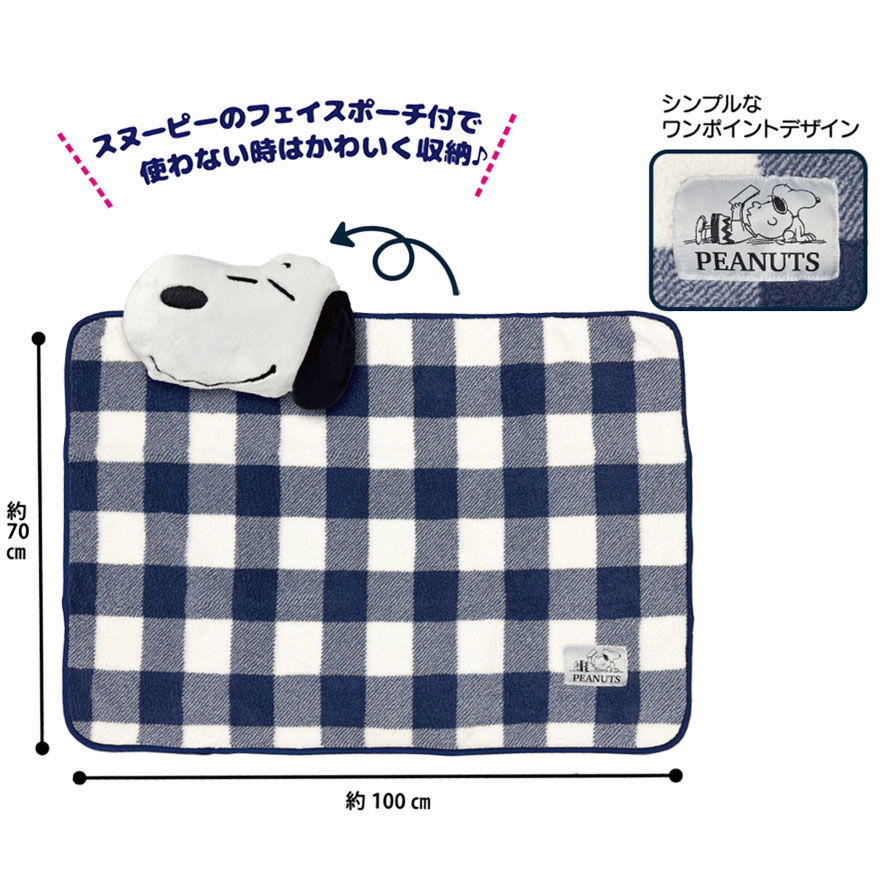 スヌーピー柄がワンポイントの大人も子供も使える、ひざ掛けです。