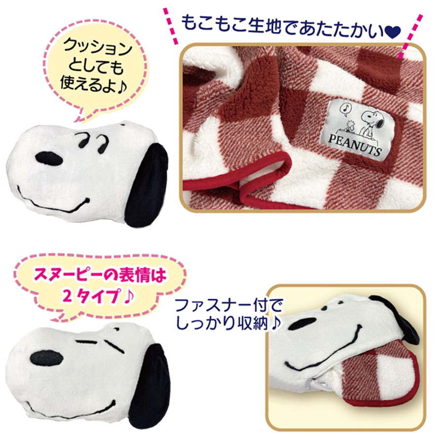 使わない時はスヌーピーのフェイスポーチに収納すればクッションとしても使えます。